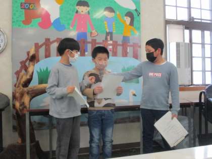 今日は3、4年生の代表の子供が、調理員さんにお渡しする手紙を紹介しました。毎日の給食を楽しみにしていて、どの給食もおいしいということや体に気を付けて給食をつくってくださいなど、感謝の気持ちを伝えました。