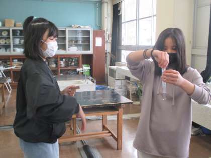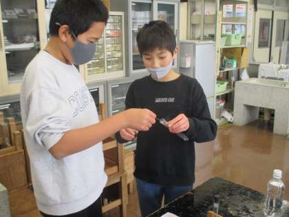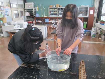 理科では、「水溶液の性質とはたらき」の単元を学習しています。今日は、「炭酸水には二酸化炭素が溶けているのか?」、「二酸化炭素は水に溶けるか?」の問題について、実験をして調べました。