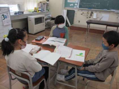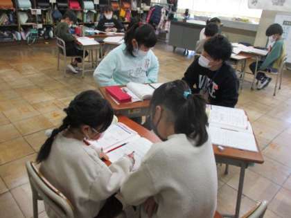 学習したことを互いに確かめ合っています。友達と一緒に考えることを楽しんでいました。