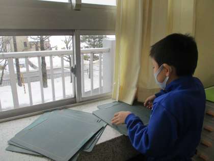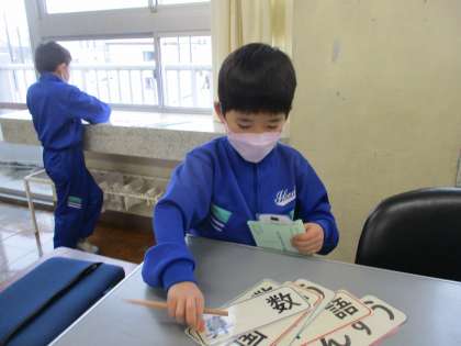 かずさがしビンゴをしています。教室にあるものの数を数えてビンゴを目指しました。