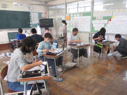 静まり返った教室で、一生懸命に書き上げる姿がとても素敵です。