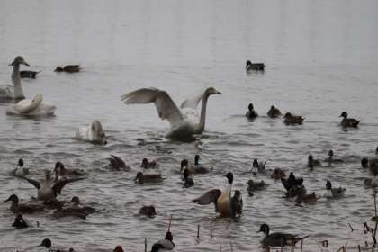 7時10分現在の気温は0度、今朝の白鳥の飛来数は、32羽でした。