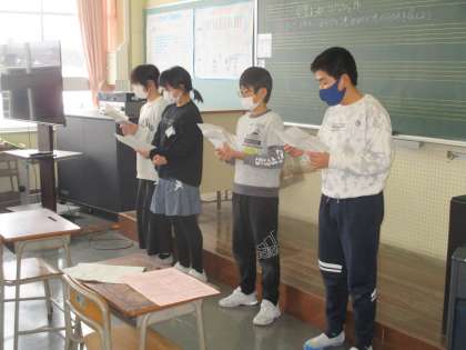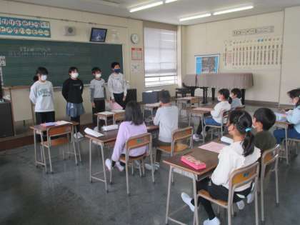 代表委員会では、5年生が「卒業おめでとうプロジェクト」について下級生に提案しました。卒業おめでとう集会の時に全校で歌う「すてきな友達」を、5年生が歌って聞かせてくれました。