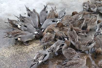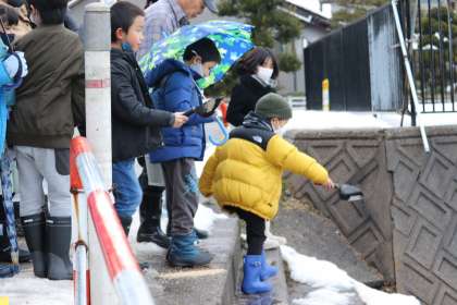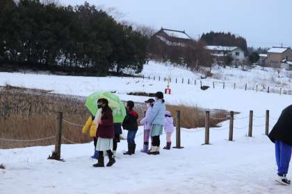 PTA、白鳥愛護会の皆様のおかげで実現しました。残念ながら白鳥は田尻池に飛来していませんでしたが、カモにえさを与えました。子供たちもカモも大喜びの様子でした。