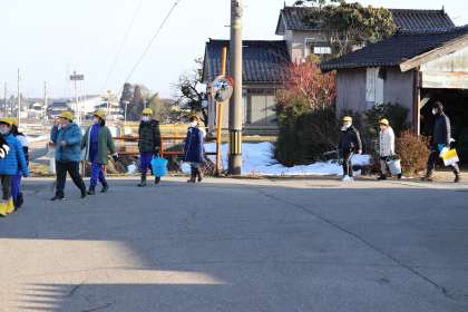 ぽかぽか陽気の中、子供たちは田尻池に向かいました。
