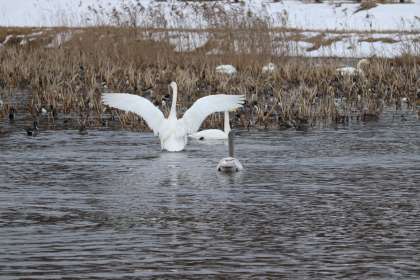 7時20分現在の気温は1度でした。59羽の白鳥が確認されていました。