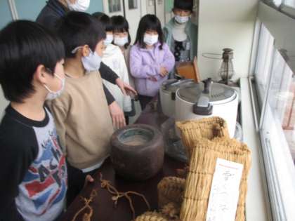 昔の道具を実際に見て触れて、今とどのように違うかを見付け出そうとしています。