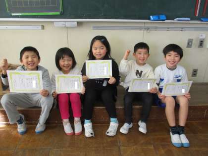 チャレンジなわとび大会の認定証をもらいました。「名人になりたい」「来年も前とびをがんばる」と来年の大会を楽しみにしている1年生です。