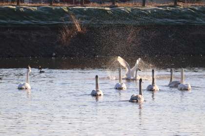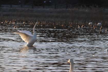 残念ながら、飛翔の様子はとらえることができませんでしたが、真っ白な白鳥の動きをしっかりと観察してきました。