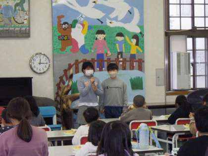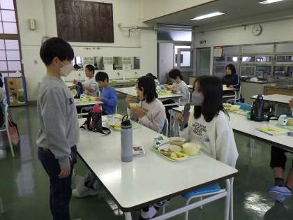 給食中に6年生の思い出の曲を聴きました。素敵な思い出ソングがいっぱいでしたね。