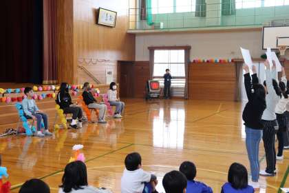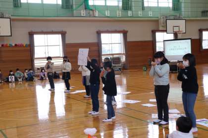 2年生は、おもしろかけ算とビリーブを手話をつけて発表しました。6年生に今までありがとうの気持ちをこめて発表しました。6年生にその思いが伝わっていると嬉しいです。