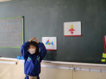 色板を使って形作りをしました。サメやロケット等、様々な形ができました。