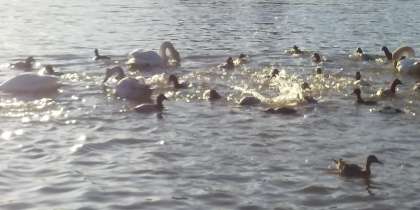 ちょうどえさをもらっているときは大喜びで、えさの争奪戦が繰り広げられていました。