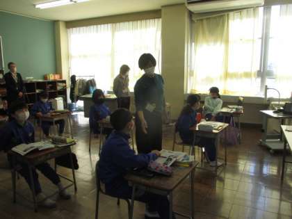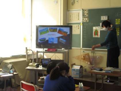 立山の魅力を表現したプレゼンを行っていました。子供たちは、美しい写真やその解説に、引き込まれています。