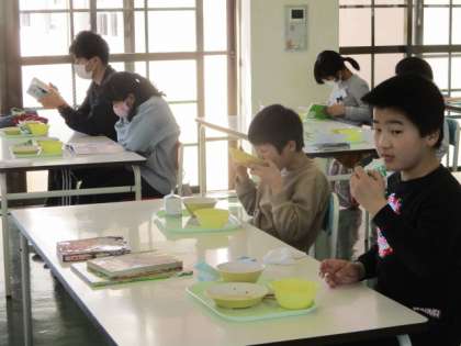 給食を食べ終わった後は、静かに読書に親しんでいます。