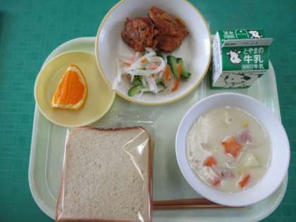 3月1日(水)今日の給食 公開日 2023/03/01 更新日 2023/03/01 池多っ子ゴーゴー 今日のメニューは、食パン、鶏肉のトマトソース味、大根サラダ、米粉シチュー、デコポン、牛乳でした。それぞれを味わっていただきました。