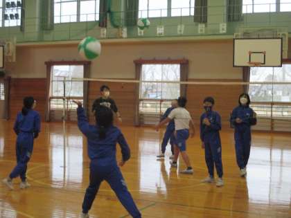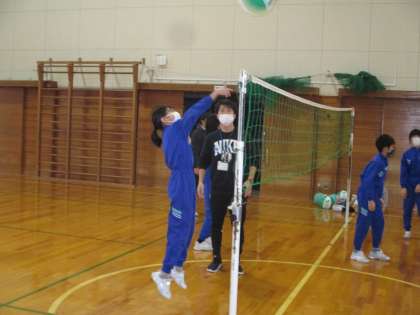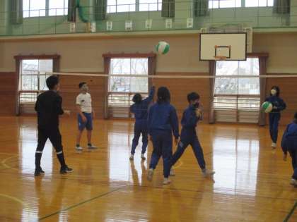ビーチバレーボールに取り組んでいます。レシーブ、トス、アタックの動作を一つ一つ丁寧に練習をしていました。