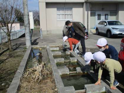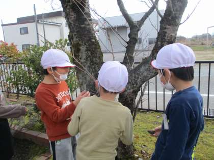 生活科で学校の周りを歩きました。「くじら雲だ!」「たこみたいだよ」といろいろな形の雲を見付けました。そして、メダカやダンゴムシ等の生き物も発見し、春の訪れを感じました。