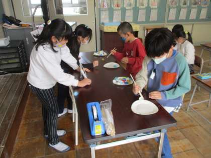 今日は、ゲーム係の皆さんが企画したあそびをしました。ペットボトルキャップはこびでは割り箸を使ってお皿まで運ぶゲームをしました。友達に「頑張れ」など応援する声が聞こえてきました。
