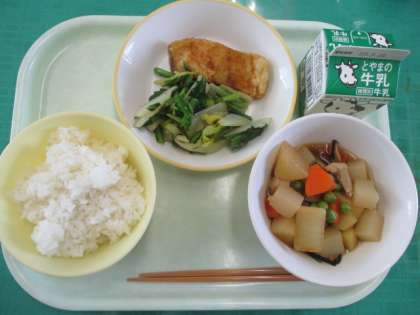 3月3日(金)今日の給食 公開日 2023/03/03 更新日 2023/03/03 池多っ子ゴーゴー 今日のメニューは、揚げ魚のレモン味、昆布和え、大和煮、牛乳でした。レモン味はとても爽やかで、おいしかったです。