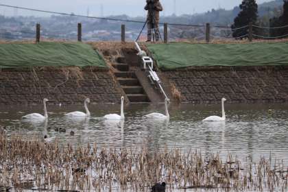今朝7時25分現在の気温は4度で、23羽の白鳥が確認されていました。