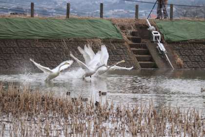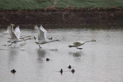 2組の白鳥の飛翔の様子を見ることができました。合図をしっかりと送って、一気に飛び立ちました。とてもかっこいい白鳥たちでした。