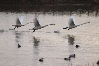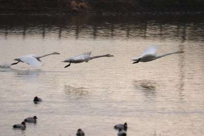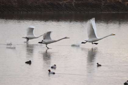 5分後、残っている白鳥たちがまた甲高い声で鳴き始めました。