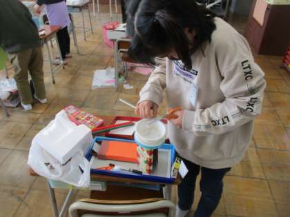 様々な箱の形を使って、ともだちハウスの製作をしています。どんな作品になるのか今から楽しみです。