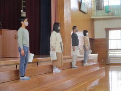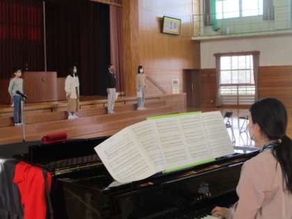 証書授与や歌の練習を行いました。細かな部分をしっかり確かめている子供たちです。