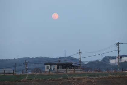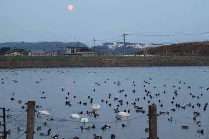 今晩は満月です。18時現在、5羽の白鳥が戻ってきていました。