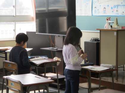 ベートーベンの「よろこびの歌」を演奏しています。1年間でリコーダーの演奏技術がぐっと高まりました。