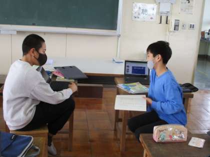 自分の夢を語る学習です。後日5年生に語るため、まずは6年生にしっかりと伝えようとしていました。思い切り語ってくださいね。