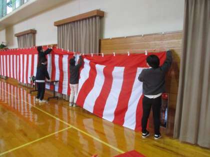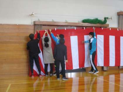 いよいよ明日は、予行練習。力を合わせて会場を美しく整えました。