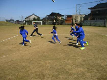 春の日差しを浴びて、アルティメットた・ゲームを楽しんでいました。子供たちは、フリスビーがどこにいくか考えながら、動いていました。