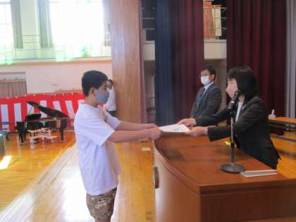 書初め大会の表彰を行いました。これまで練習してきた成果を発揮することができましたね。