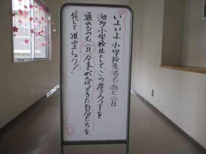 6年生へのメッセージが置かれていました。みんなが6年生を応援しています。