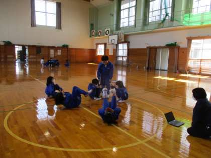 表現運動に取り組んでいました。今日は、仲間と考えた「四季」の動きを披露していました。