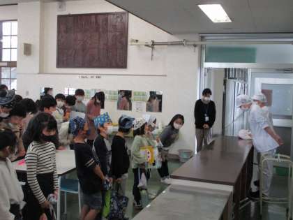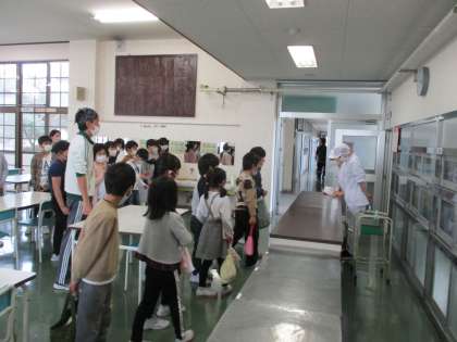 ランチルームを清掃した後、一年間おいしい給食を作ってくださった調理員の方に感謝の気持ちを伝えました。全体であいさつした後、学年ごとにもあいさつをしていました。