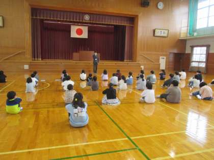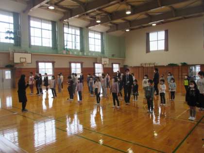 修了式の後、生徒指導の先生から春休みの過ごし方についてのお話がありました。引き続き、入学式に向けて「やぁ!」の歌の練習をしました。