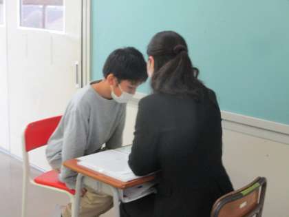 真剣に先生のお話を聞いていました。新年度からの目当ても考えていますね。