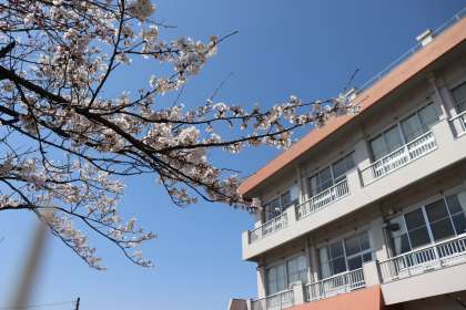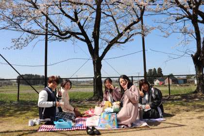 校庭の桜が満開を迎えています。 先生方もお花見会食です。