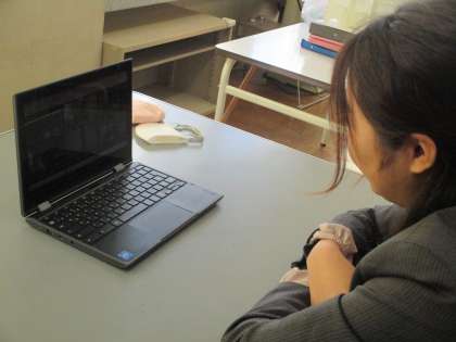 離任式の後、1年生の担任と子供たちとのお別れの会がミートで行われました。会話が弾み、思わず笑顔がこぼれる担任の先生でした。
