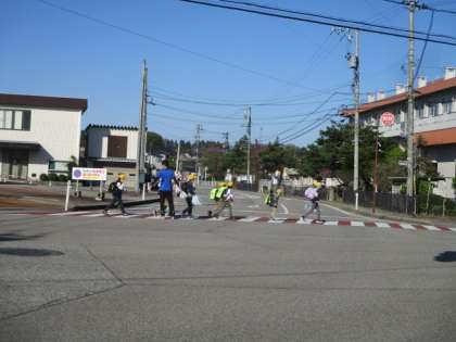 きらきらとまばゆい日差しの中、1年生も元気に登校しています。