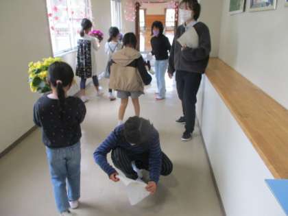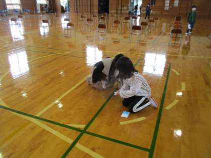 入学式の準備では、通る人が滑らないようにと、丁寧に床の水を拭きとる姿が見られました。