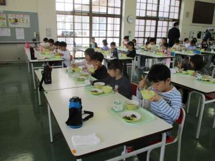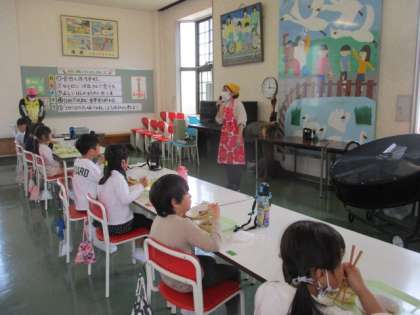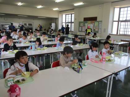 1年生も給食が始まりました。ランチルーム会食の約束を確認し合いました。しっかりと守って、みんなでおいしくいただきましょうね。