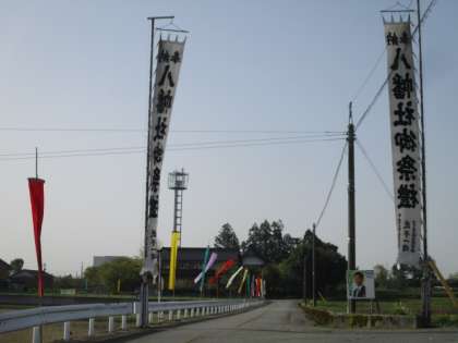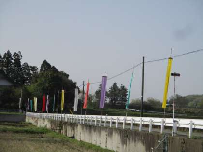 朝から子供たちはわくわくしていました。獅子舞が披露されるからです。のぼり旗が祭礼の雰囲気を一層高めています。地域の大切な伝統的な行事です。