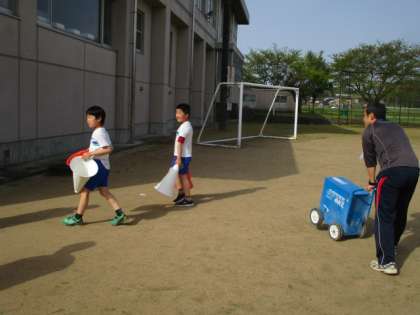後始末もしっかりと行います。走り終えた後、グラウンドに一礼して教室に戻ります。