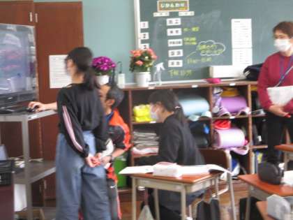 図を見ながら、みんなに分かるよう説明しています。聞くみんなも一生懸命です。