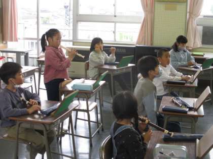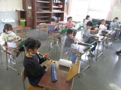 リコーダーにはたくさんの種類があり、子供たちはその映像と音に驚いていました。音の変え方にも気付くことができましたね。