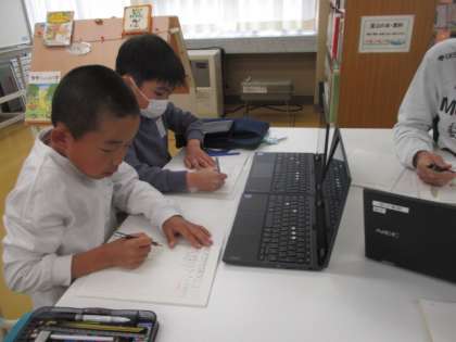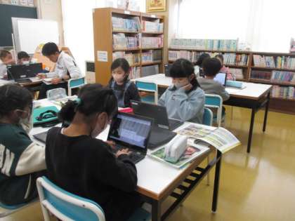 図書室で調べ学習です。熱心に学んでいます。